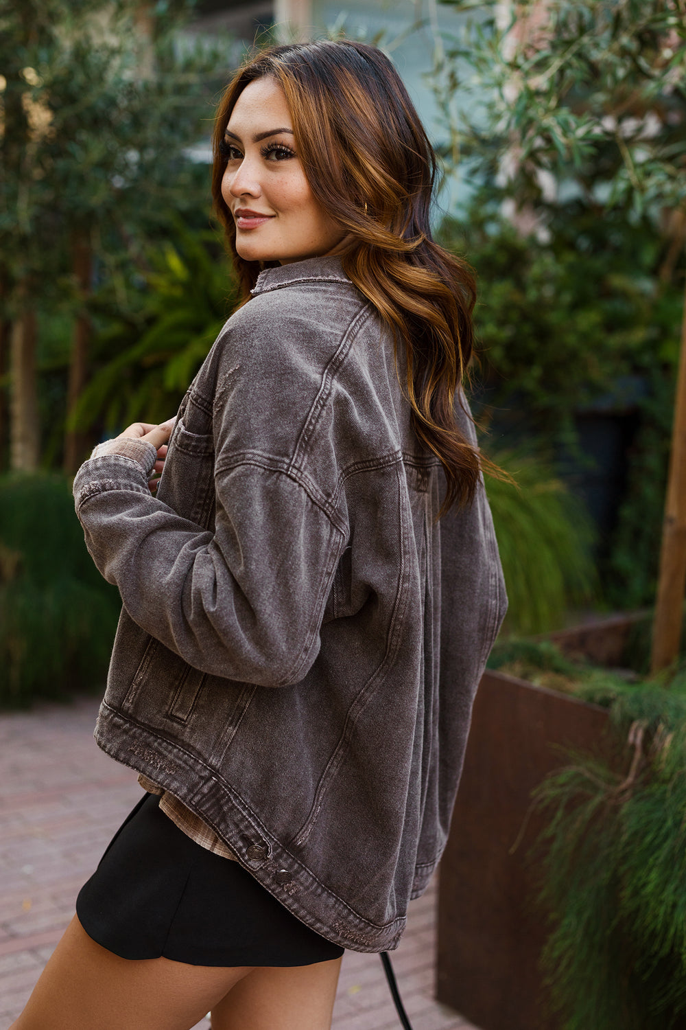 The Almost Famous Dark Wash Corduroy Collar Barn Jacket