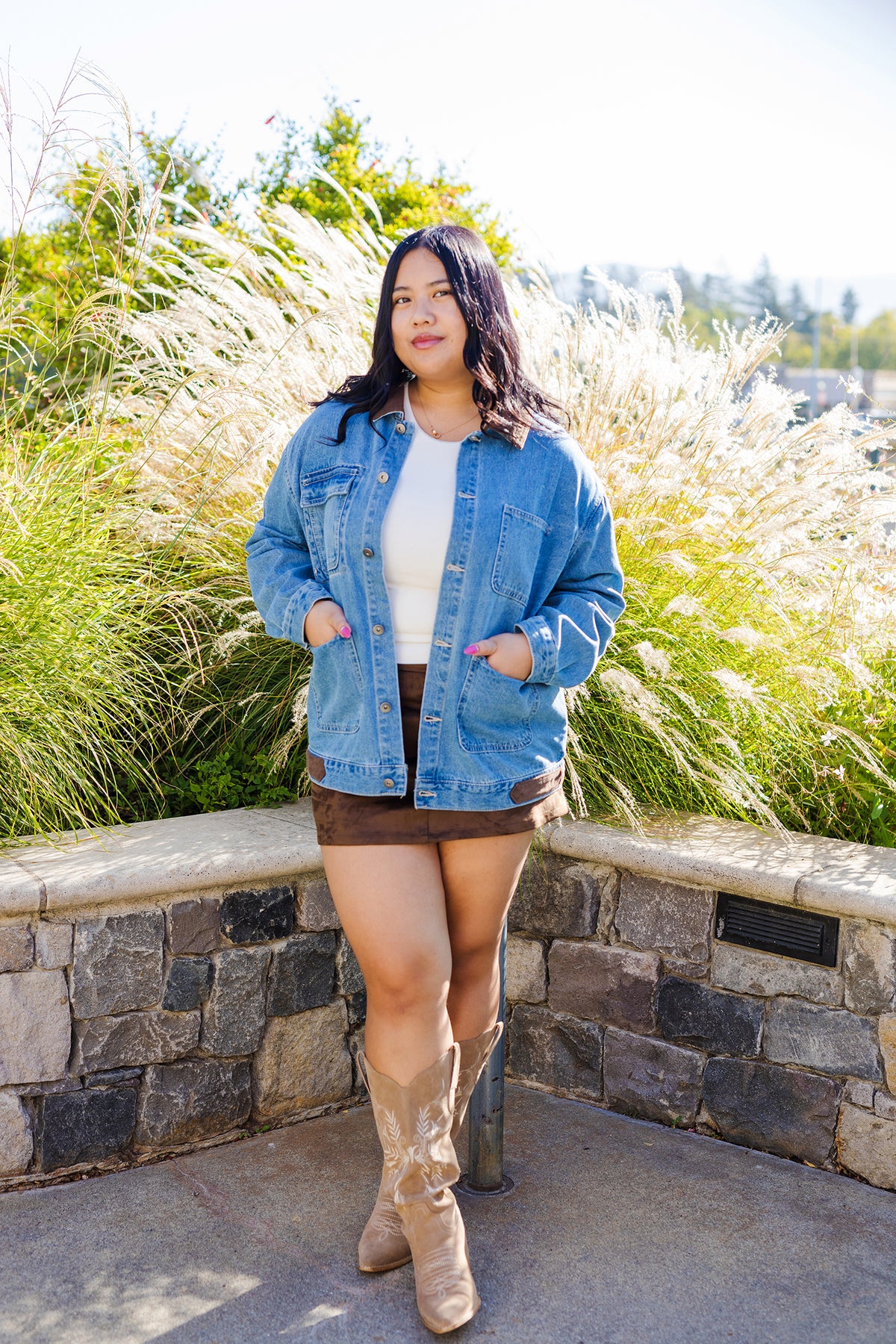 Style it with wide-leg jeans for a double-denim statement or drape it over a floral dress and boots for an effortlessly chic western-inspired look.