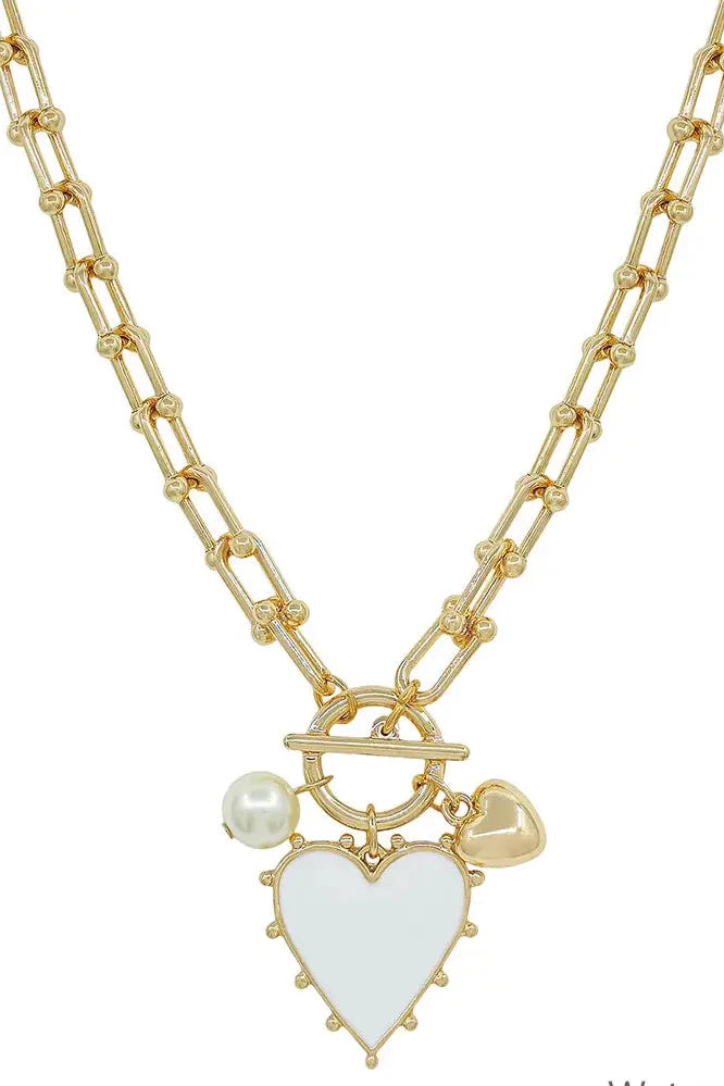 The Gold Chain Necklace with White Studded Heart Charm Necklace