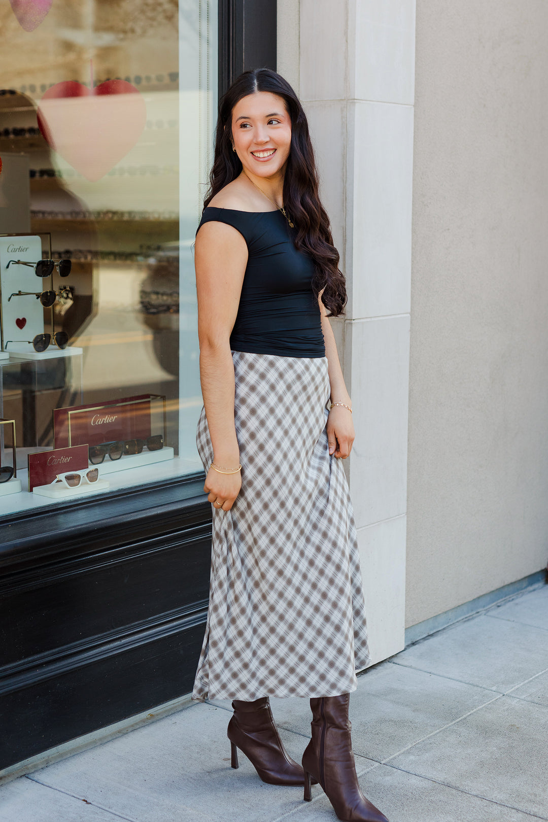 The Had You At Plaid Chocolate Brown Maxi Skirt