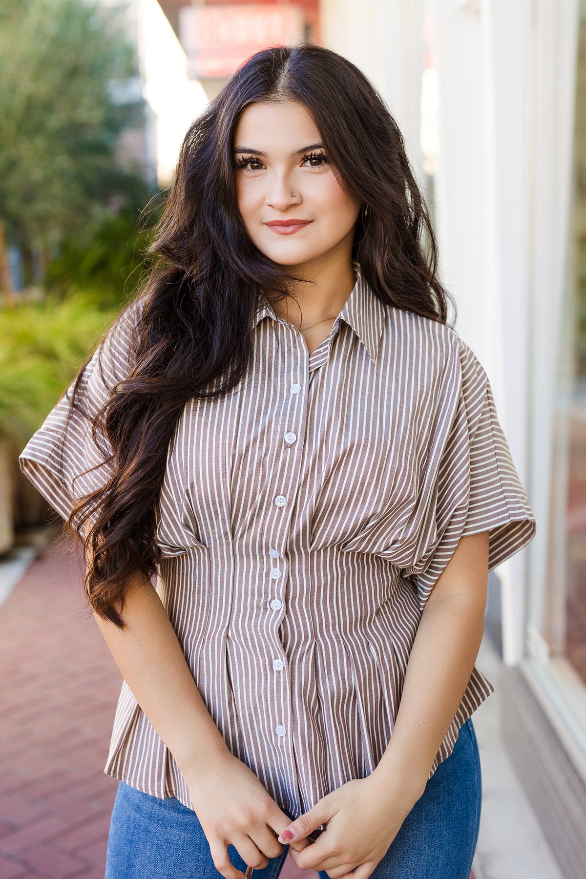 The Sure Thing Coco Striped Pleated Short Sleeve Blouse 🤎