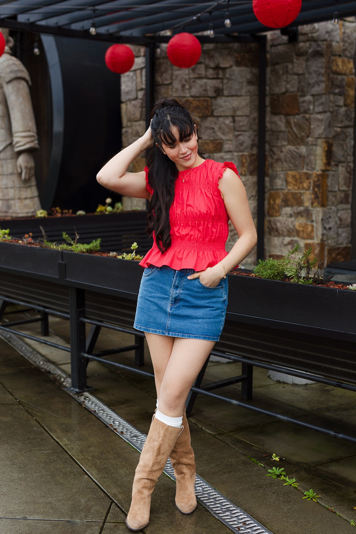 The Red Hot Ruffle Sleeveless Top is your instant outfit-upgrader—snatched, playful, and just the right amount of extra. With allover smocking for a flattering fit, ruffled sleeve detailing, and a ruffle hem that gives a subtle peplum vibe, this top brings the heat without trying too hard.