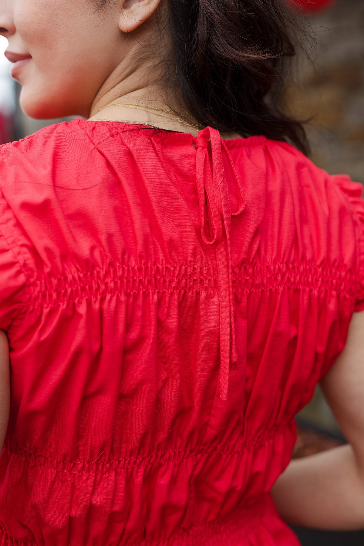 • Allover Smocking: Stretchy, comfy, and ultra flattering through the bodice.