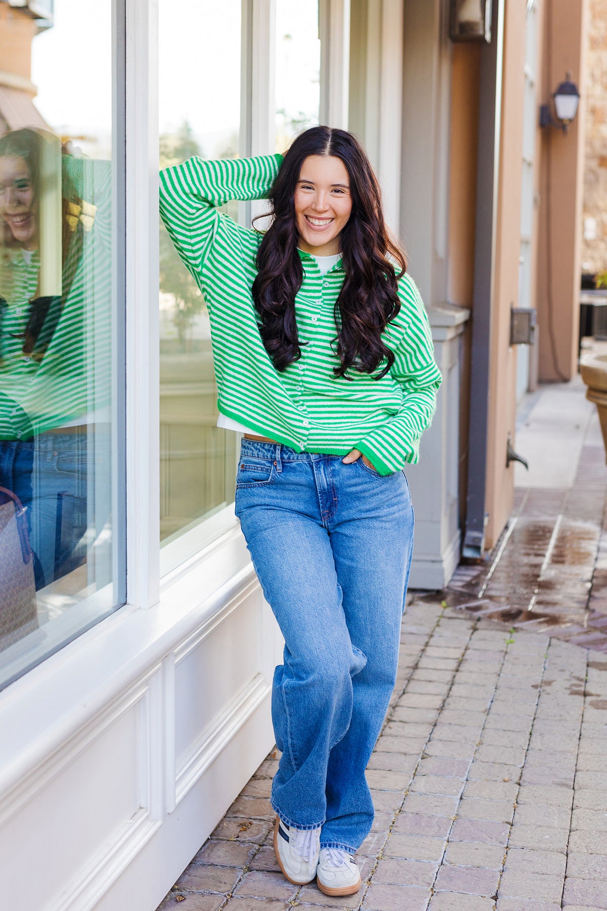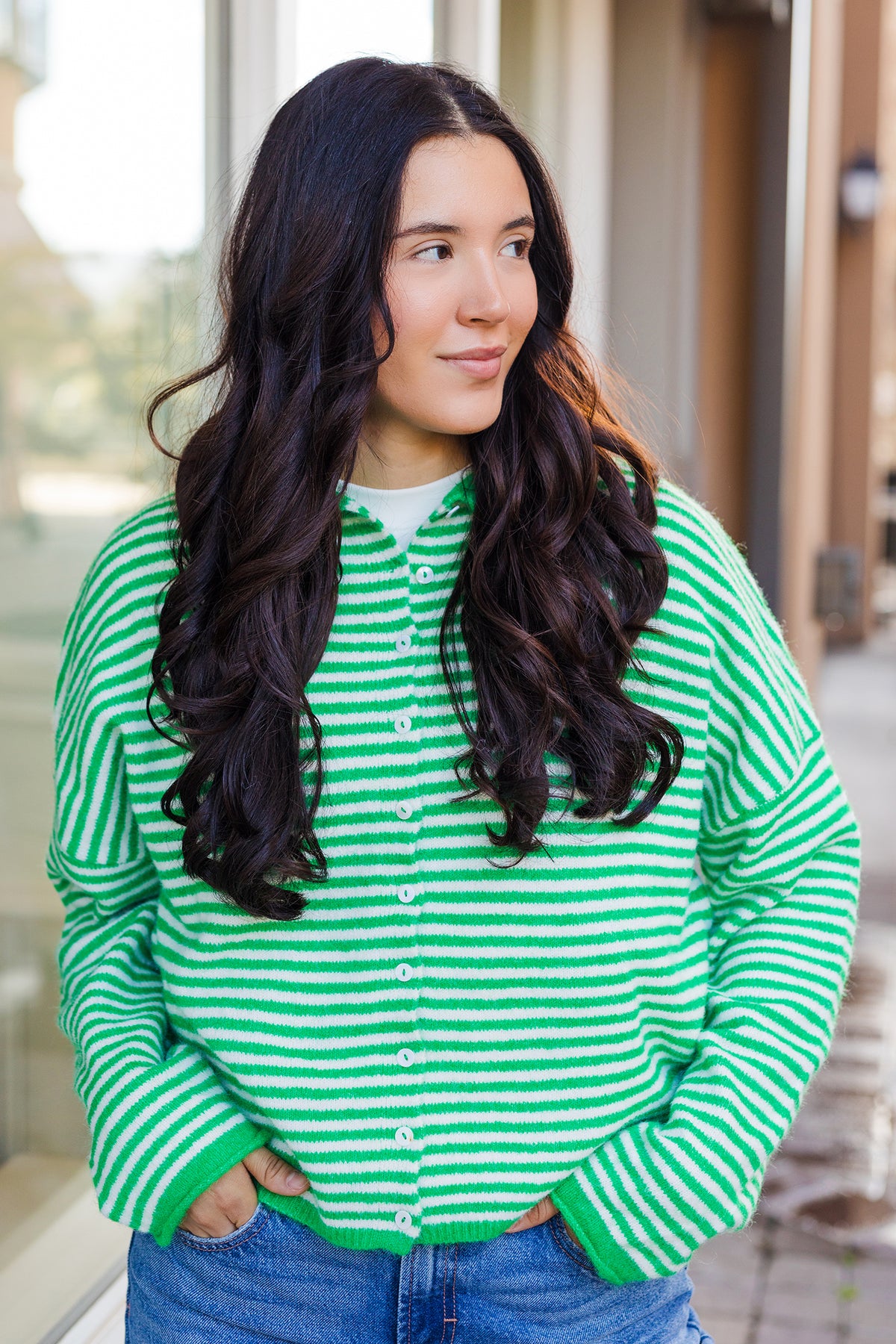 Add a pop of happy color to your fall lineup with The Piper Cardigan! This soft, lightweight knit features mini stripes, rolled edge finishes on the sleeves and collar, and that perfectly relaxed fit that feels like your favorite hug. Available in two mood-boosting shades — Kelly Green and Royal Blue — this cardigan is an instant pick-me-up for any outfit.