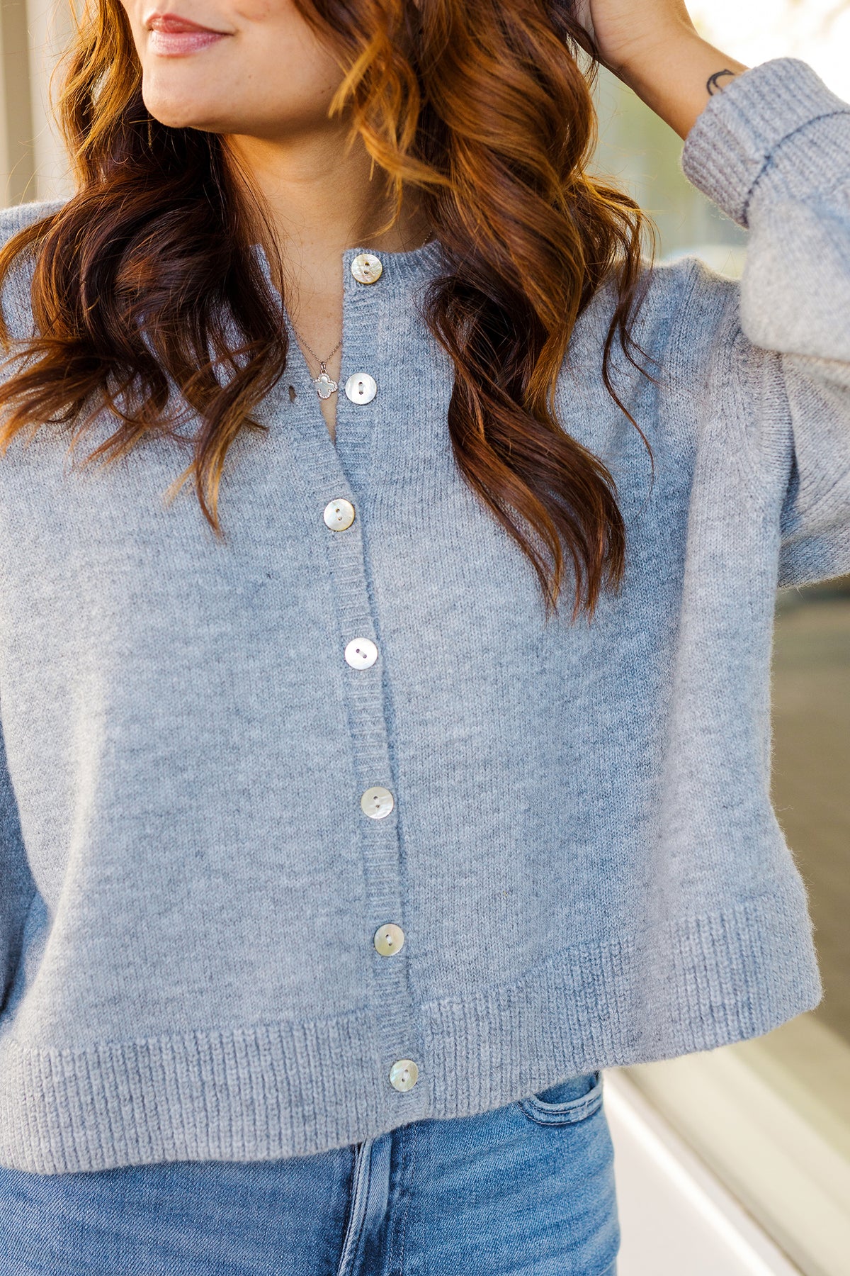 Details: Button-down front, soft knit texture