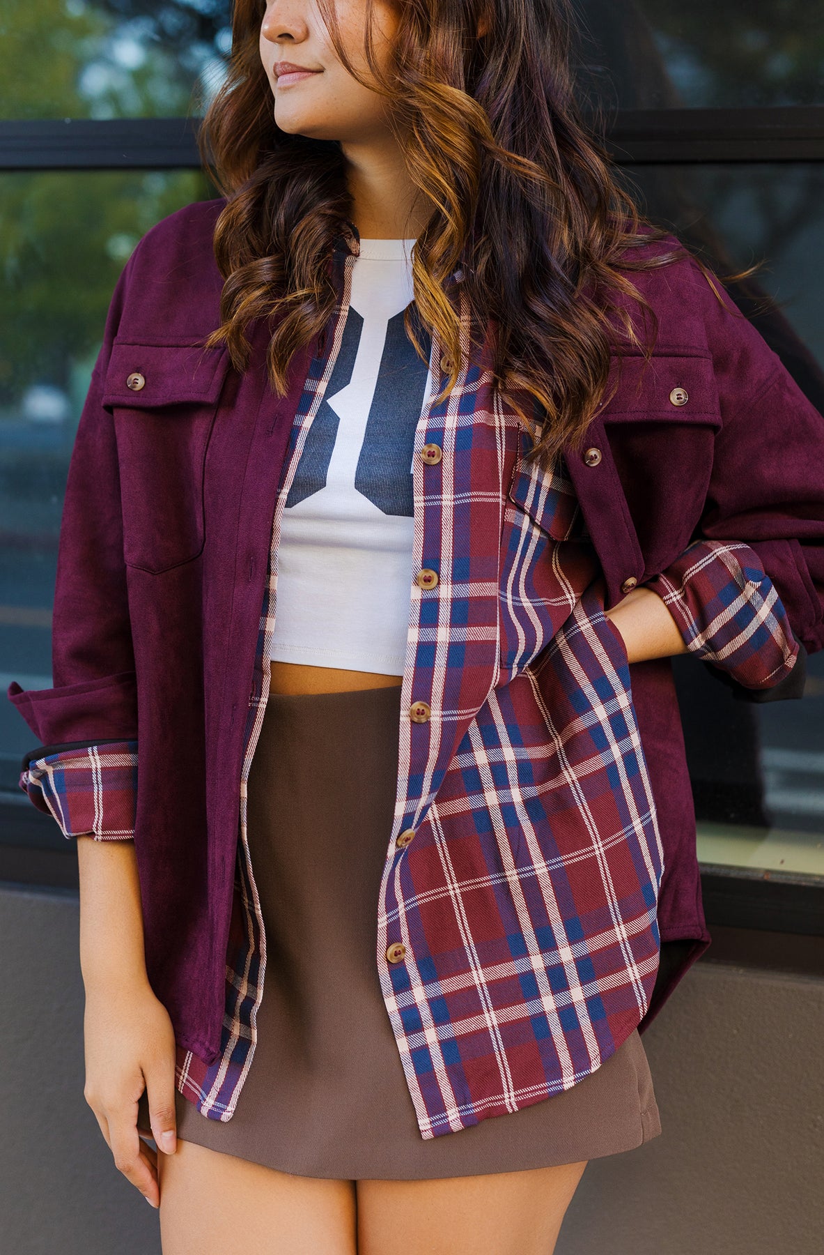 Bring that rustic fall charm to your wardrobe with The Rancher Shirt — a classic plaid button-down with a cozy, laid-back edge. Designed in a rich burgundy plaid, this collared woven top features drop shoulders, a front flap pocket, and an easy relaxed fit perfect for layering. Made from 100% cotton, it’s breathable, soft, and effortlessly timeless — just what every fall outfit needs.