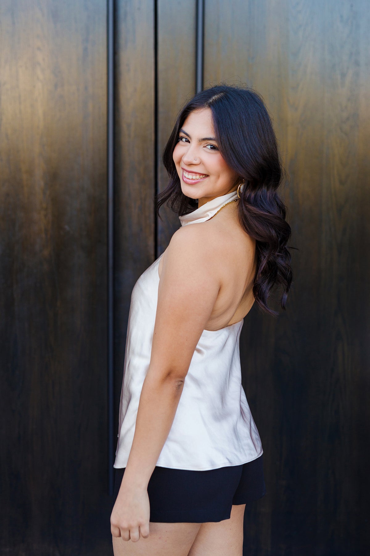 The Golden Hour Halter Top brings that luxe-but-effortless energy to any outfit. Crafted from a satin-style fabric that drapes like a dream, this top features a chic halter neckline, open back, and flowy silhouette that’s perfect from happy hour to after-hours.