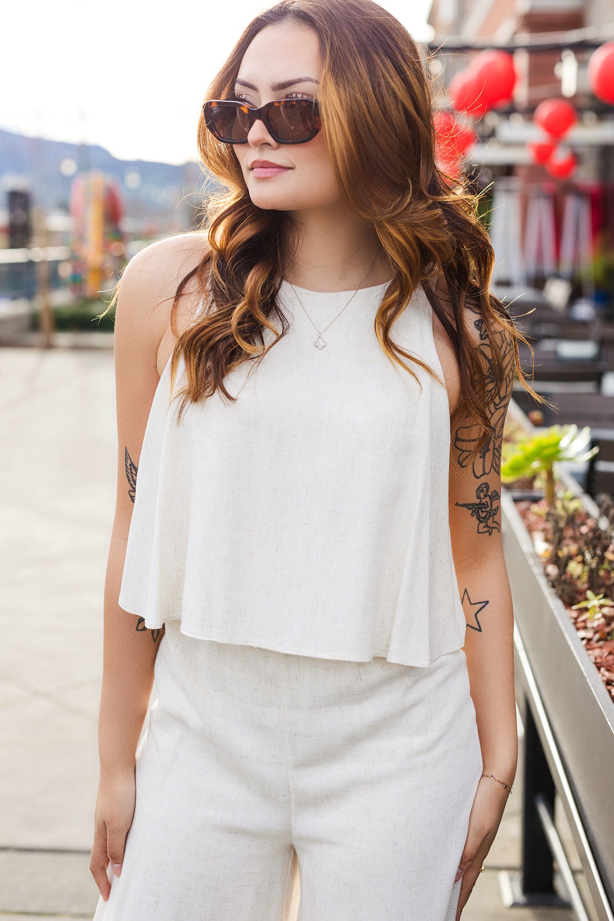 Make a statement in The Tahiti Linen Open Back Jumpsuit—a stunning piece that brings effortless island elegance to your warm-weather wardrobe. This sophisticated jumpsuit features a chic open back design that adds a touch of allure while the luxurious linen blend keeps you cool and comfortable all day long.