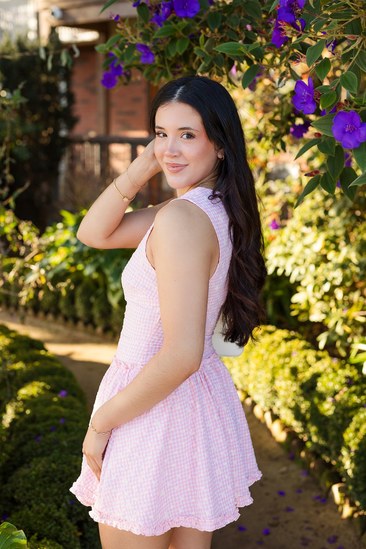 Whether you're exploring a farmers market, enjoying a weekend brunch, or heading to a garden party, this rosebud mini dress delivers effortless charm with practical style. The smocked bodice provides a comfortable, flexible fit that moves with you, while the flowy skirt creates a flattering silhouette with just the right amount of movement. The hidden side pockets add unexpected functionality to this already-perfect dress.