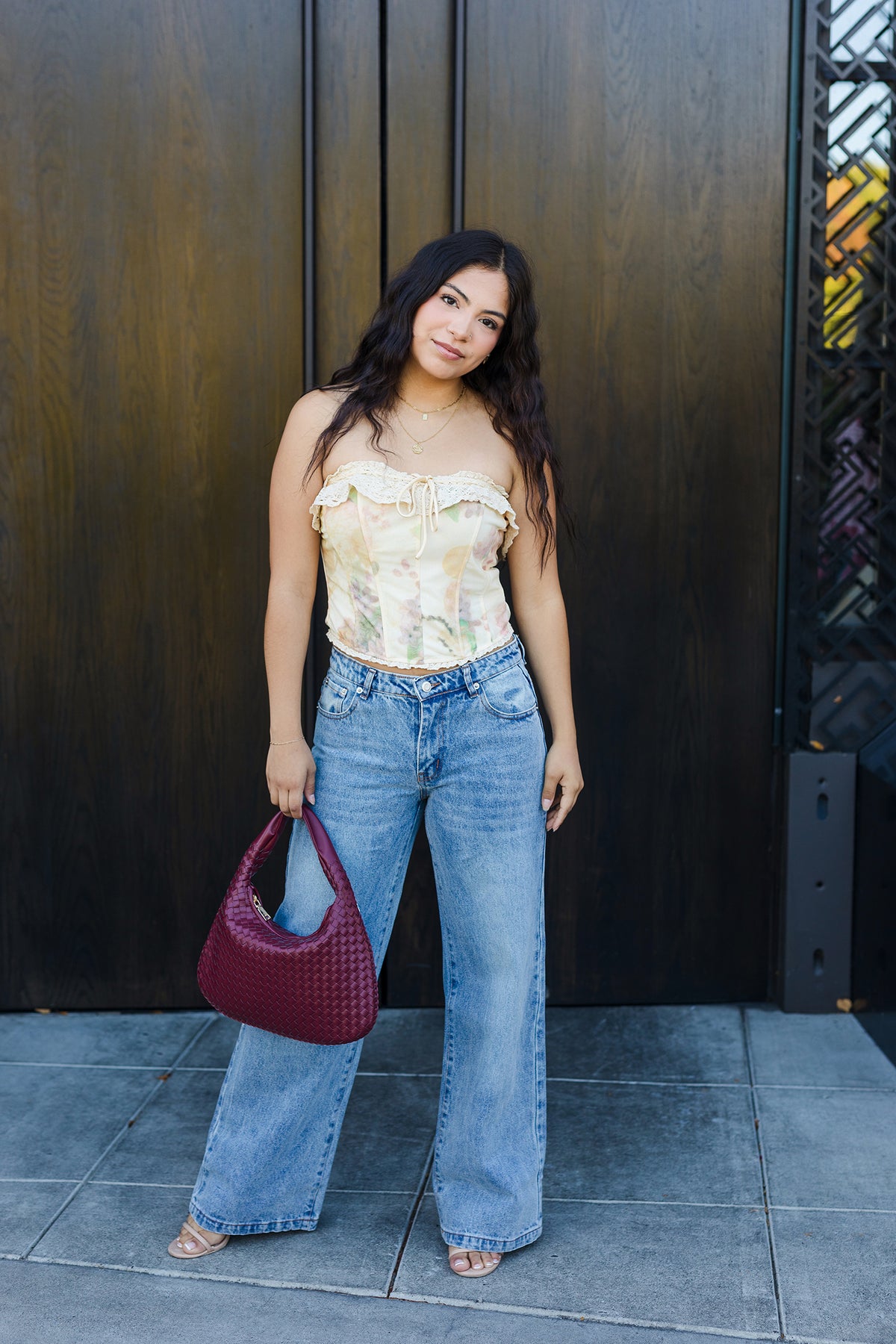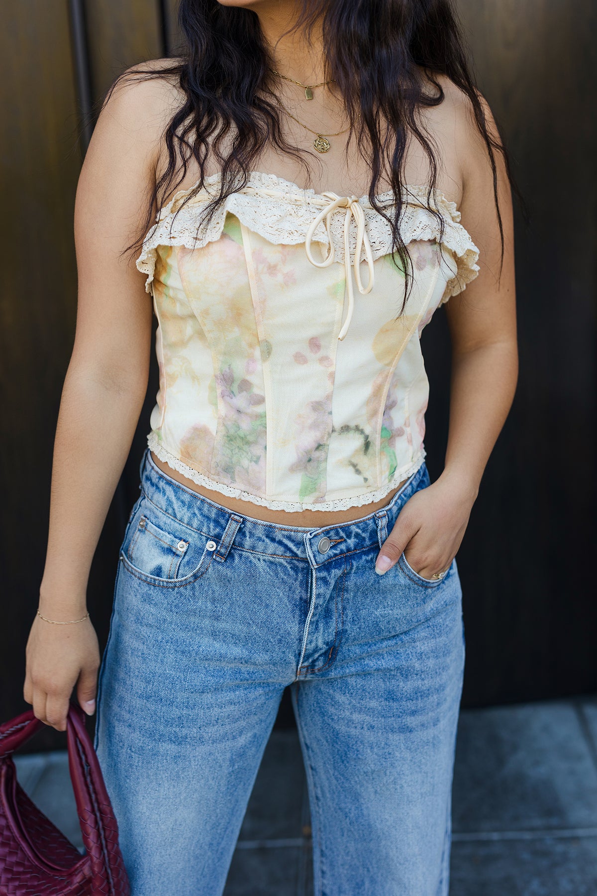 The Painted Lady Corset Top is a work of art you can actually wear—equal parts romantic, sultry, and just a little undone in the best way.